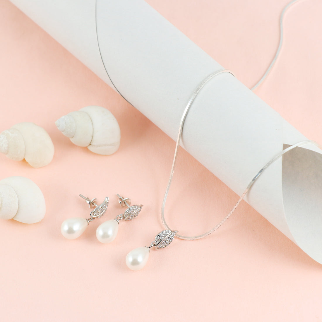 Silver Leaf Pearl Pendant