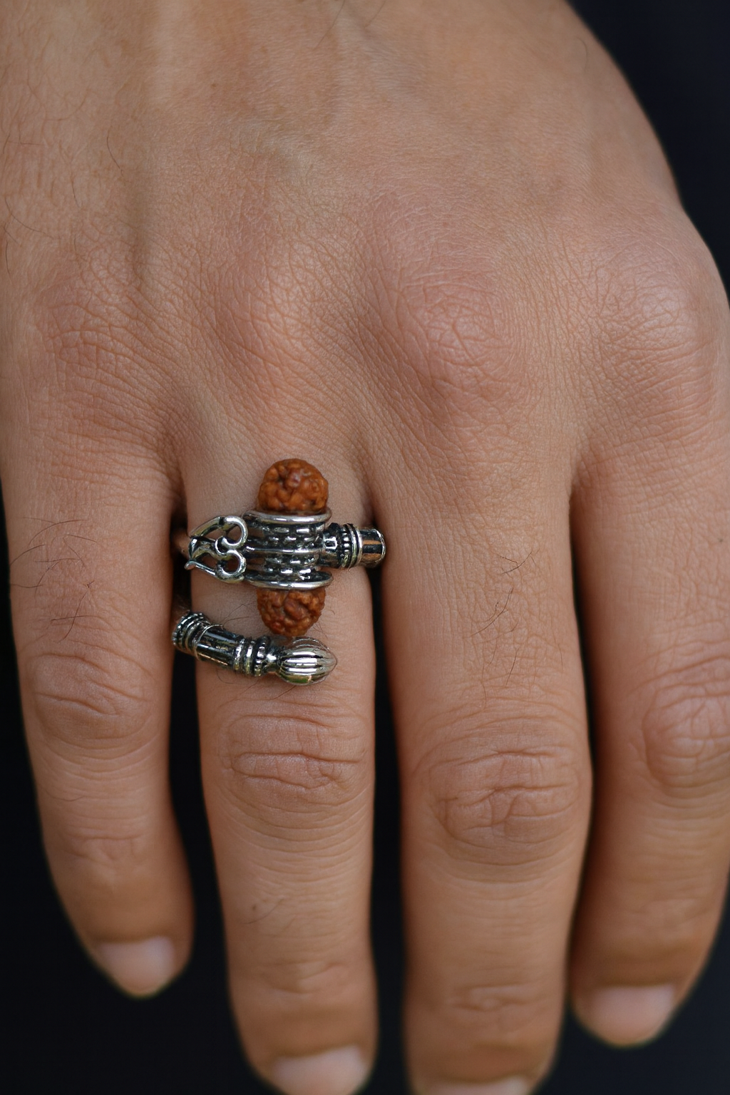 Divine Rudraksha Trishul Adjustable Ring