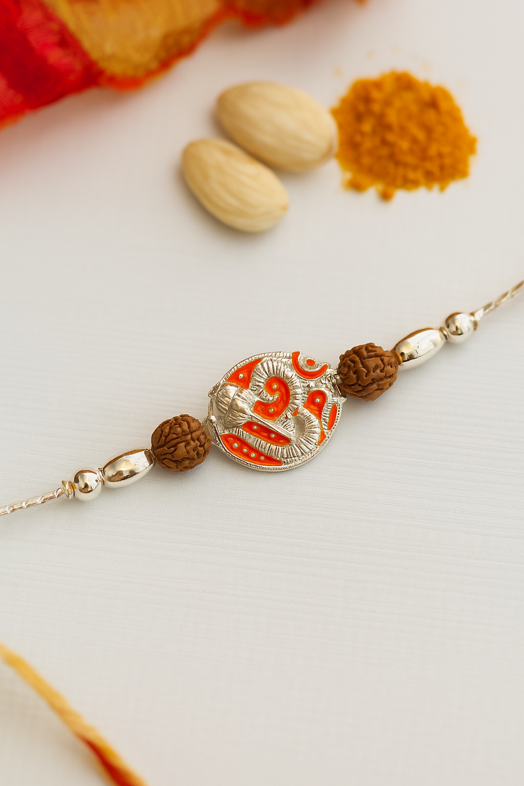 This 925 Sterling Silver Om Symbol Rakhi with Beaded Thread. Celebrate the joyous occasion of...