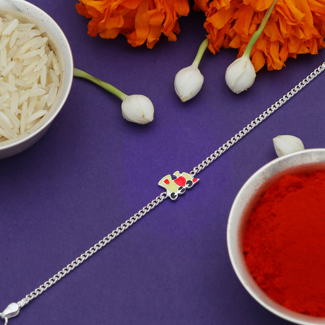 This 925 Sterling Pure Silver Train Baby Rakhi. Perfect for Raksha Bandhan, this Rakhi blends tradition...