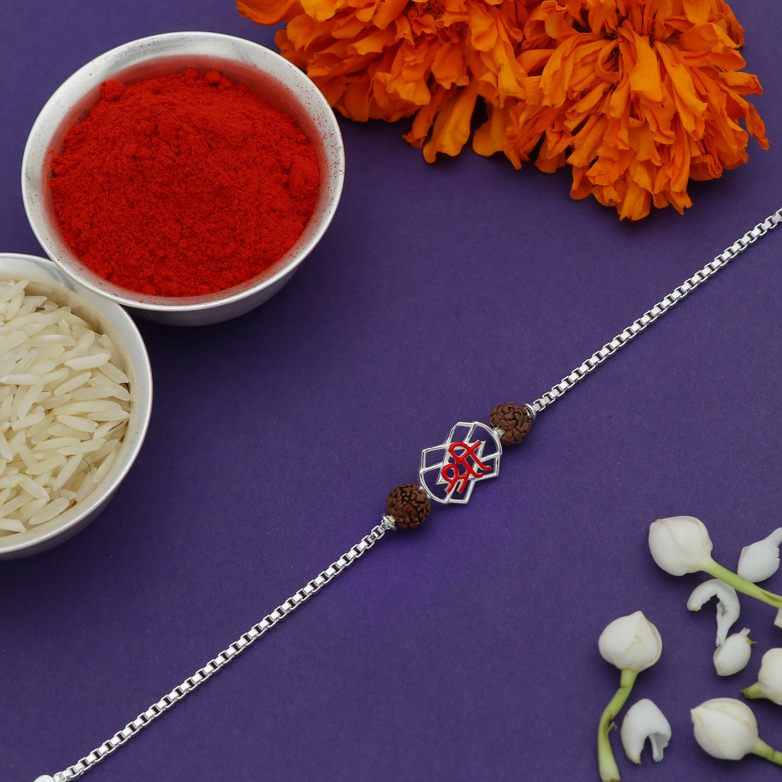 This 925 Sterling  Shri Rudraksha Silver Rakhi.  The "Shri" symbol in red adds a touch...