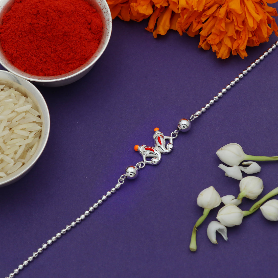 This 925 Sterling Shri Ganesh Silver Rakhi. Â This elegant silver bracelet features a central design...
