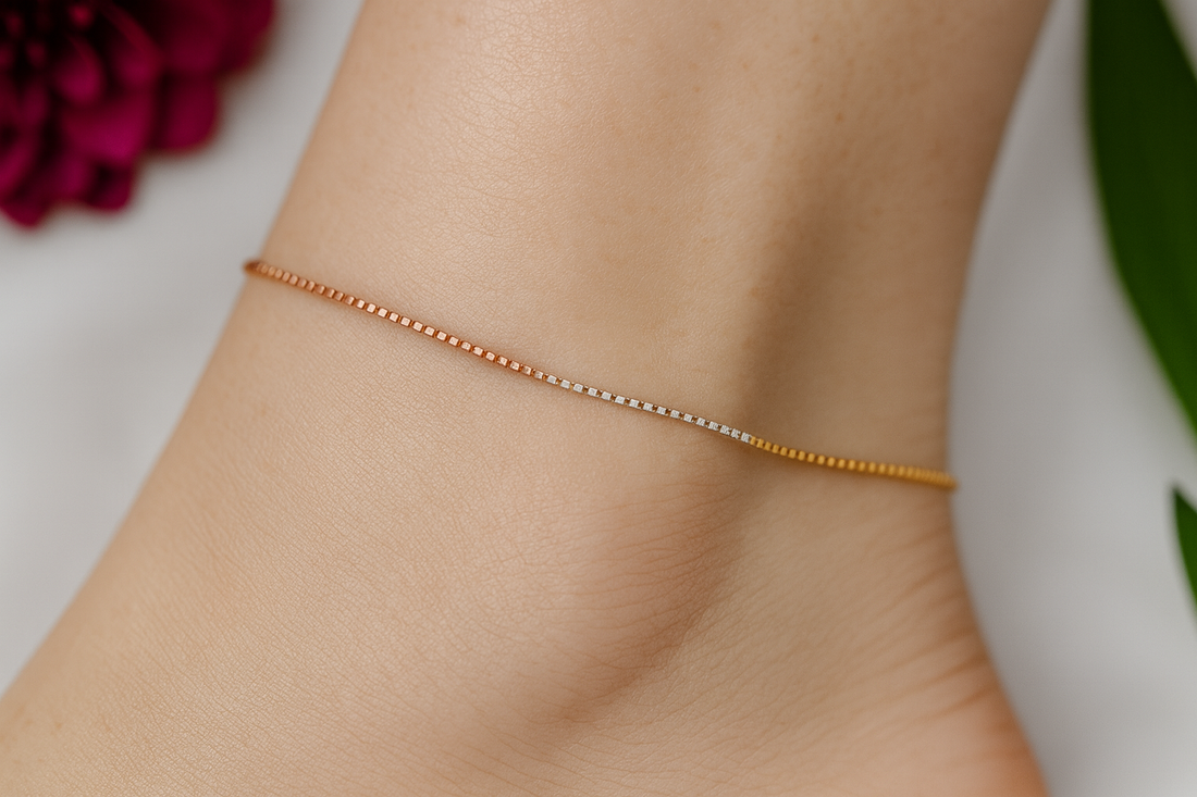 Anklet of Traditional Motifs: These may have ghungroos, floral charms, or ethnic detailing that is suitable for weddings and festivals.