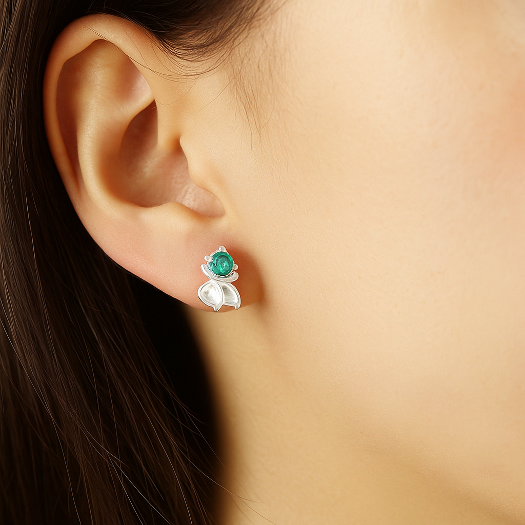 Silver Emerald Blossom Studs