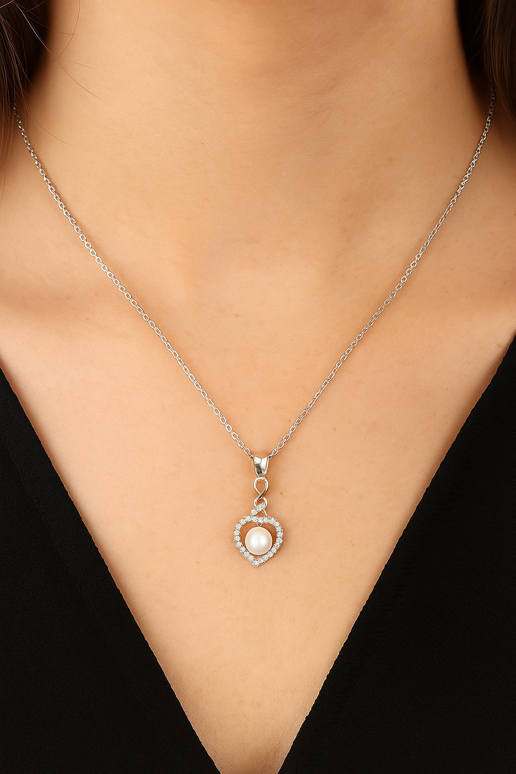 This Beautiful 925 Sterling Silver Ethereal Pearl Heart Chain Pendant. This delicate piece exudes grace...