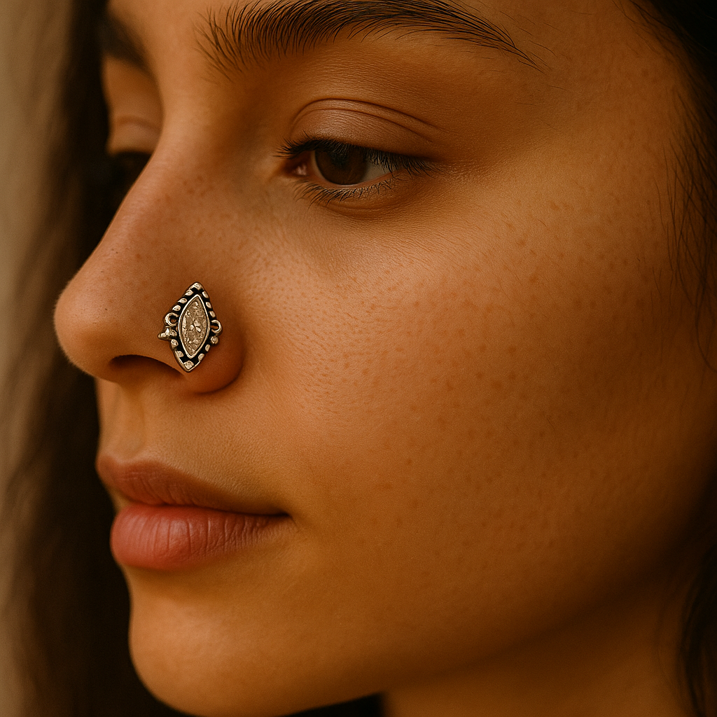 This beautiful 925 sterling silver classic nosepin . Nosepins are considered a symbol of beauty, femininity, and cultural heritage in many societies.