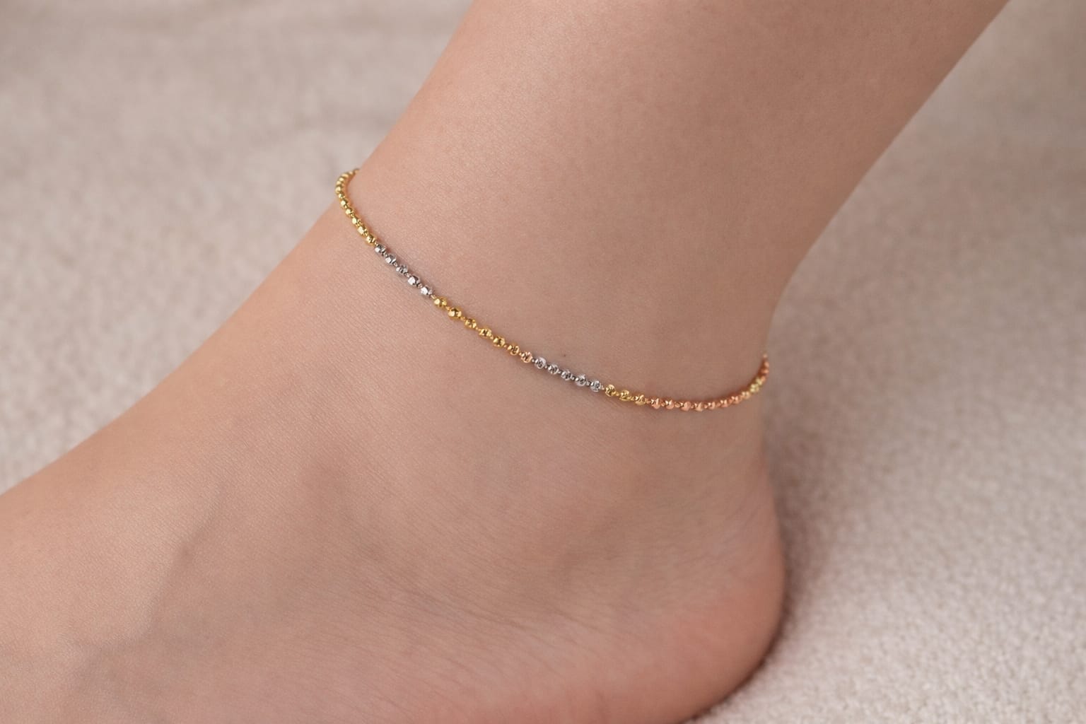 Elevate everyday elegance with the Trinity Glow Anklet, beautifully crafted in authentic 925 Sterling Silver. Designed with a delicate sequence of finely polished beads in silver, gold, and rose gold tones, this tri-color anklet offers a subtle yet luxurious shine.